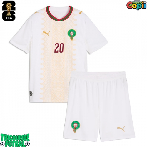 Echipament fotbal Maroc Ayoub El Kaabi #20 Tricou Deplasare Mondial 2026 pentru copii maneca scurta (+ Pantaloni scurti)