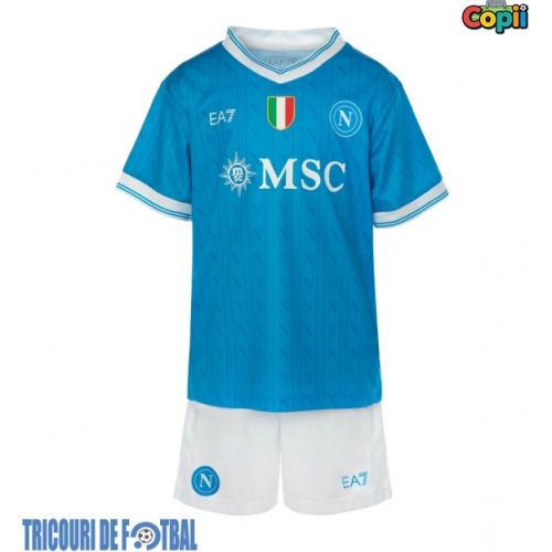Echipament fotbal SSC Napoli Tricou Acasa 2025-26 pentru copii maneca scurta (+ Pantaloni scurti)